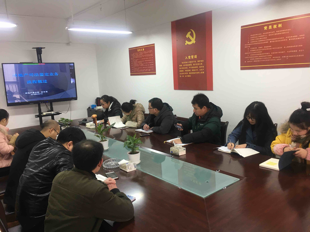 “司法鉴定业务流程”由房地产事业部副总经理宋宇亮担任主讲,主要侧重对司法鉴定项目流程的梳理,通过公司近几年司法鉴定评估项目的实践,对鉴证性评估项目从沟通受理、项目实施、出具报告需要注意事项进行了详细阐述,同时站在市场的角度对司法鉴定业务未来发展和公司技术优势等做了分析。讲师通过现场答疑、视频等方式与员工交流互动、答疑解惑,既提高了参训员工的业务水平,同时为司法鉴定类业务开展提供技术指引,对公司业务创新升级具有较强的指导意义。