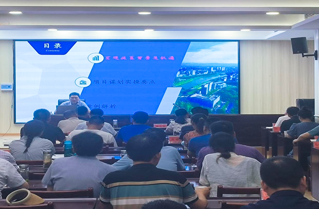 2022年8月8日,受浠水县人民政府邀请,永业行投资咨询事业群工程咨询事业部副总经理乐成银在浠水县“全县项目谋划培训会”上,就项目谋划及投融资实务解析作专题交流培训。浠水县副县级领导杨长荣主持会议。